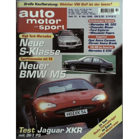 PLUS: High-tech Mercedes: Neue S-Klasse - Test: Jaguar XKR mit 363 PS - Große Kaufberatung: Welcher VW Golf ist der beste? - Geländewagen Vergleich: Mercedes ML 320, Chevrolet Blazrer, Ford Explorer, Mitsubishi Pajero - Doppeltest: Opel Astra Caravan, Citroen Xsara Break - 100000 km Dauertest: Mercedes E 230 - Im Test: Sechs Fahrradträger - Im Extra: 125er Motorräder