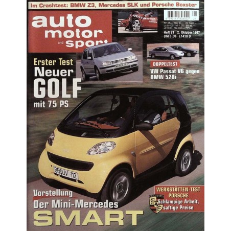 PLUS: Werkstätten-Test Porsche: Schlampige Arbeit, saftige Preise - Im Crahstest: BMW Z3, Mercedes SLK und Porsche Boxster - Erster Test: Neuer Golf mit 75 PS - Doppeltest: VW Passat V6 gegen BMW 528i