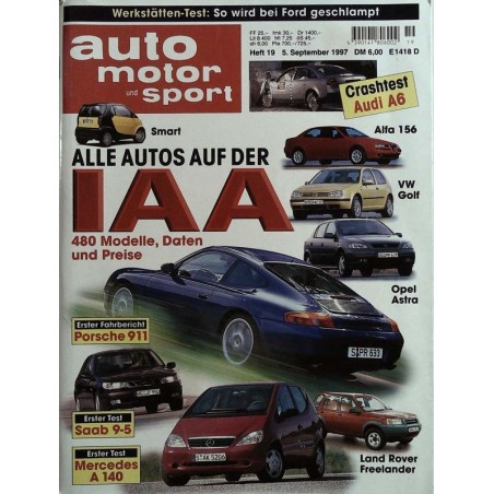 TEST & FAHRBERICHT Test Mercedes A 140 Classic Mercedes-Kompaktwagen in Basisversion Vorstellung Jaguar XJ8 Luxuslimousine mit neuen V8-Motoren Fahrbericht Mercedes E 400 CDI Versuchsauto mit erstem V8-TDI-Motor Test Saab 9-5 2.0 Neue Mittelklasse-Limousine mit Vierzylinder Crashtest Audi A6 1.8 T Die Audi-Mittelklasse im Sicherheitscheck Vorstellung Alfa Romeo 156 Sportliche Limousine der unteren Mittelklasse Fahrbericht Porsche 911 Sportwagen mit wassergekühltem 3,4 Liter-Boxermotor und 300 PS Vorstellung Land Rover Freelander Neuer kleiner Geländewagen Fahrbericht Brabus SLK V8 Getunter Mercedes-Roadster mit Achtzylinder Vergleichstest Audi A8 2.5 TDI, BMW 725 tds und Mercedes S 300 TD Drei Luxuslimousinen mit Sechszylinder-Diesel Impression Chrysler Viper GTS US-Sportwagen mit Zehnzylindermotor Vier Generationen VW Golf Deutschlands erfolgreichster Kompaktwagen