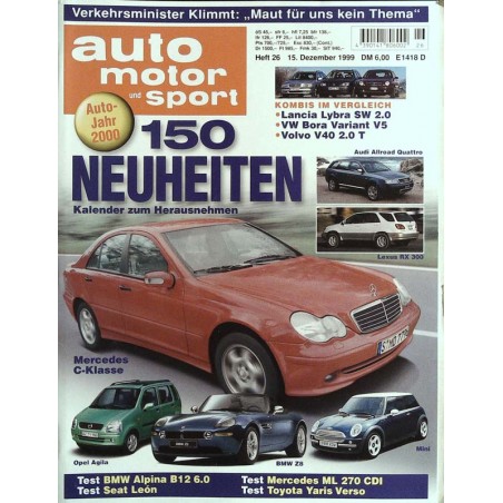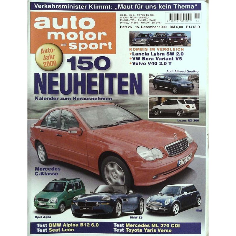 Titelbild: Autojahr 2000: 150 Neuheiten unter anderem: Mercedes C-Klasse, Opel Agila, BMW Z8, Mini, Audi Allrad Quattro und Lexus RX 300