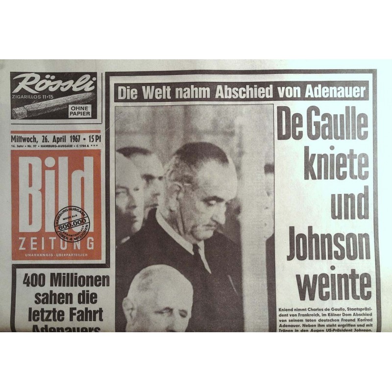 Deutsche Bild Zeitung vom Mittwoch den 26 April 1967