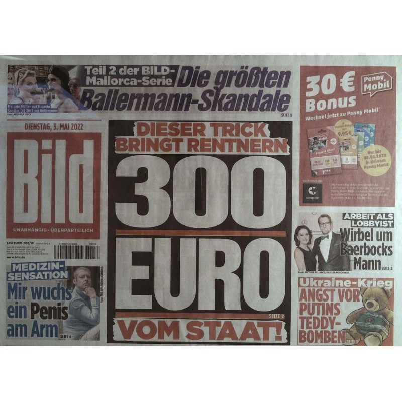 Deutsche Bild Zeitung vom Dienstag den 3 Mai 2022