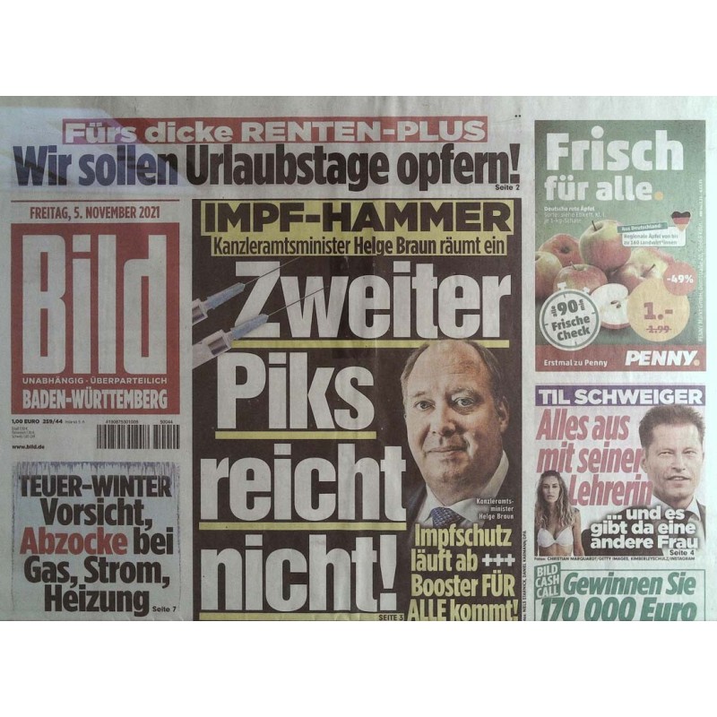 Deutsche Bild Zeitung vom Freitag den 5 November 2021