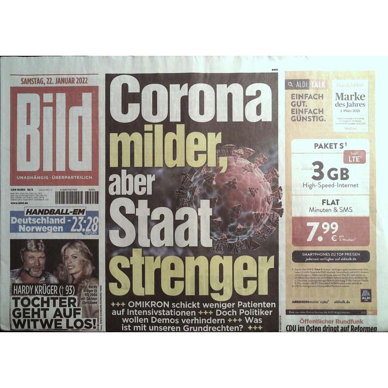 Deutsche Bild Zeitung vom Samstag den 22 Januar 2022
