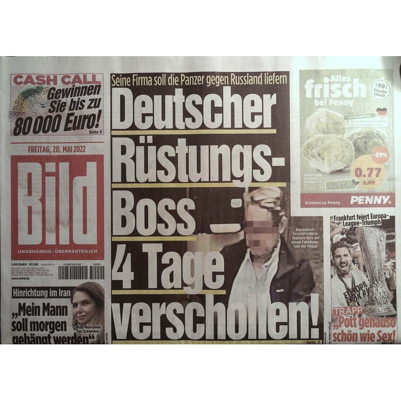 Deutsche Bild Zeitung vom Freitag den 20 Mai 2022