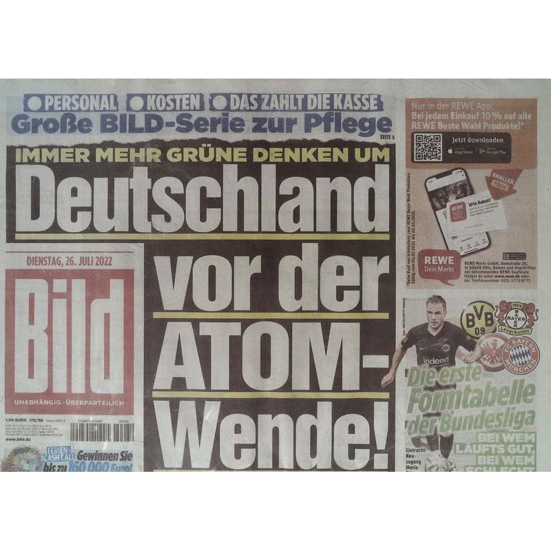Deutsche Bild Zeitung vom Dienstag den 26 Juli 2022
