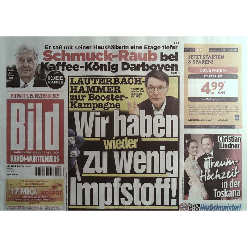 Deutsche Bild Zeitung vom Mittwoch den 15 Dezember 2021