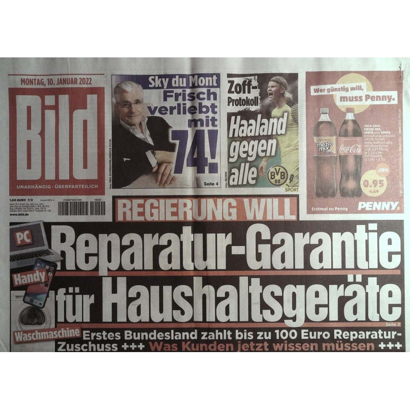Deutsche Bild Zeitung vom Montag den 10 Januar 2022