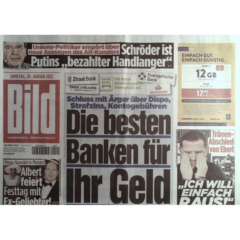 Deutsche Bild Zeitung vom Samstag den 29 Januar 2022