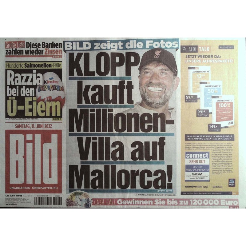 • Bild Zeitung Samstag, 11 Juni 2022 - Jürgen Klopp