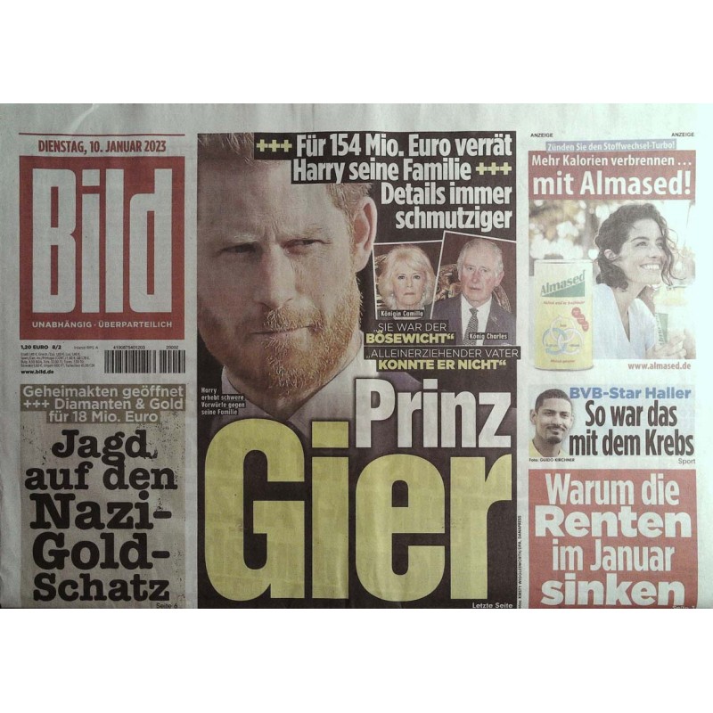 Deutsche Bild Zeitung vom Dienstag den 10 Januar 2023