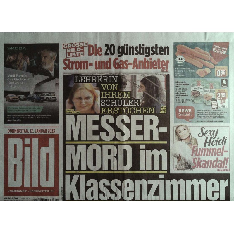 Deutsche Bild Zeitung vom Donnerstag den 12 Januar 2023