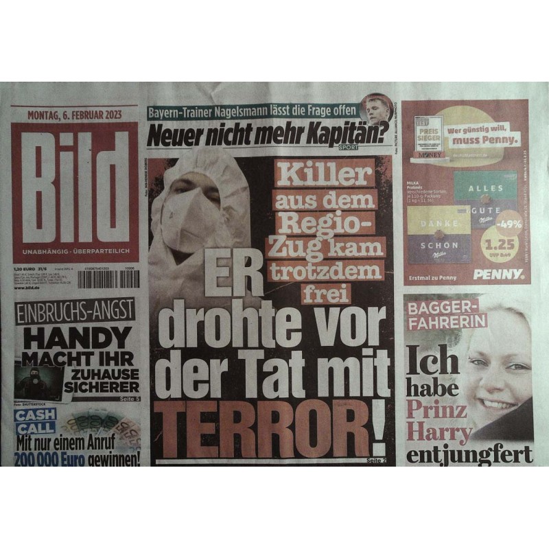 Titelblatt: Killer aus dem Regio-Zug kam trotzdem frei: Er drohte vor der Tat mit Terror!