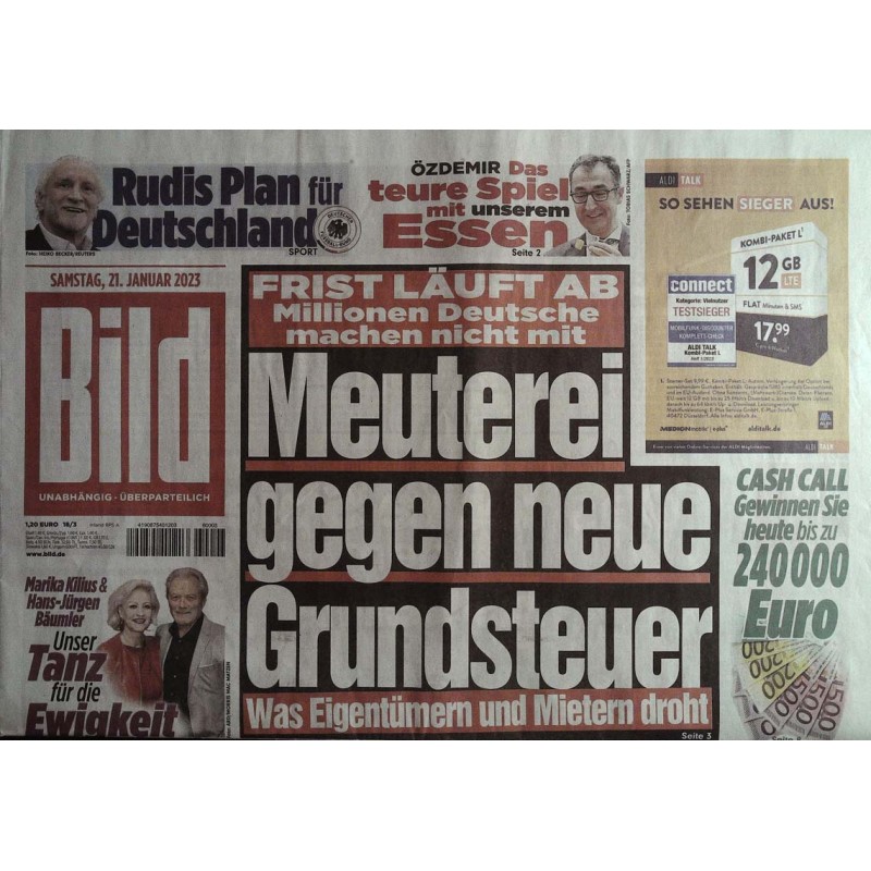 Deutsche Bild Zeitung vom Samstag den 21 Januar 2023