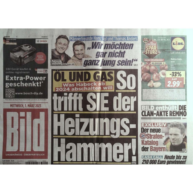 Bild Zeitung Mittwoch, 1 März 2023 - Öl und Gas Hammer!