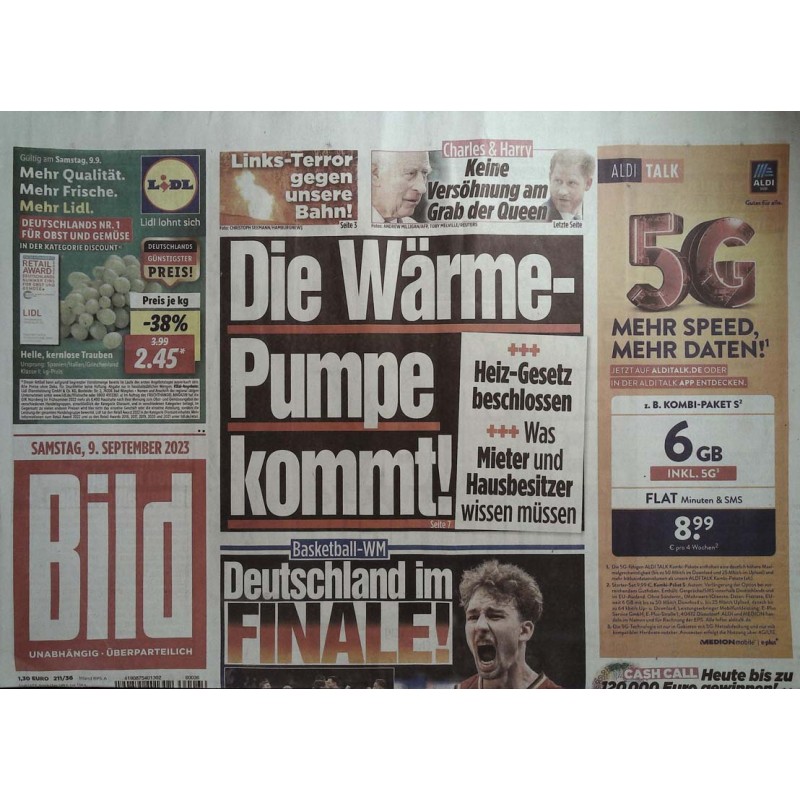 Deutsche Bild Zeitung vom Samstag den 9.9.2023
