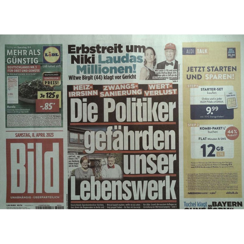 Deutsche Bild Zeitung vom Samstag den 8.4.2023