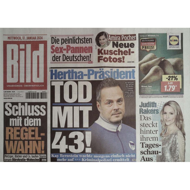 Deutsche Bild Zeitung vom Mittwoch den 17.01.2024