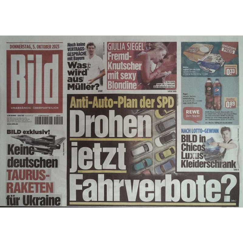 Deutsche Bild Zeitung vom Donnerstag den 5.10.2023
