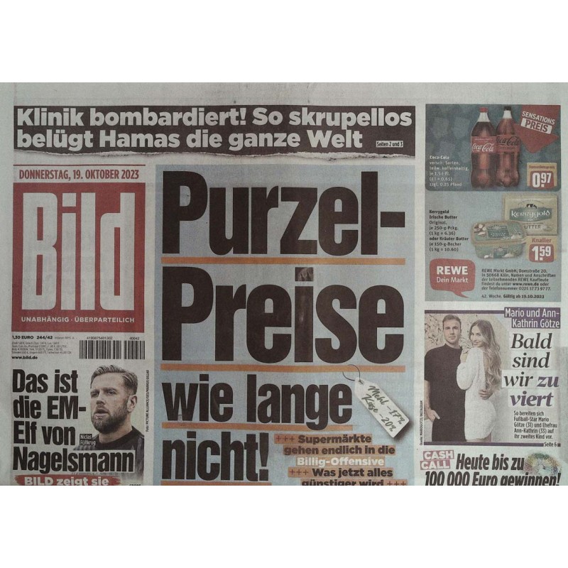 Deutsche Bild Zeitung vom Donnerstag den 19.10.2023