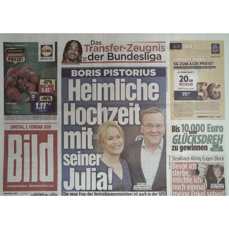 Titelblatt: Boris Pistorius: Heimliche Hochzeit mit seiner Julia!