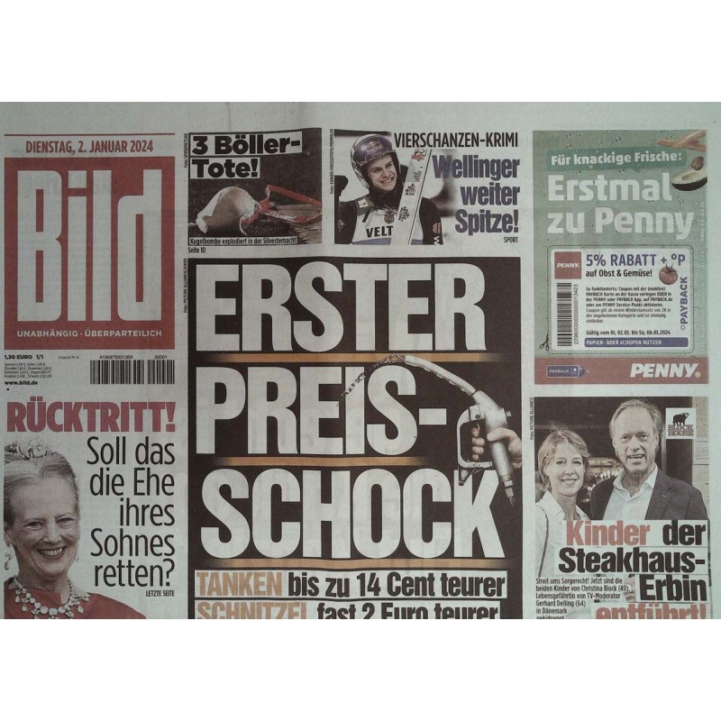 Deutsche Bild Zeitung vom Dienstag den 2.01.2024