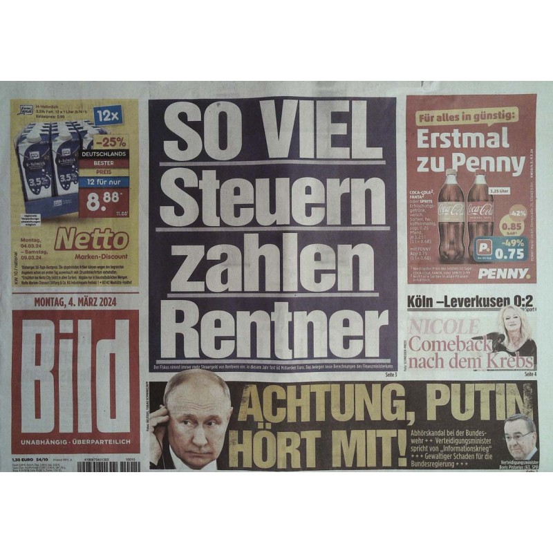 Deutsche Bild Zeitung vom Montag den 4.03.2024