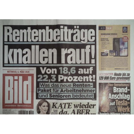 PLUS: Öko Terrorismus: Brandanschlag auf Tesla-Werk - Mobilfunk Überraschung: Prepaid bis 63% billiger als Langzeit Verträge - Kate wieder da, aber.... - Bild des Tages: Guten Tag Hewrr Batman, haben Sie was zu verzollen?