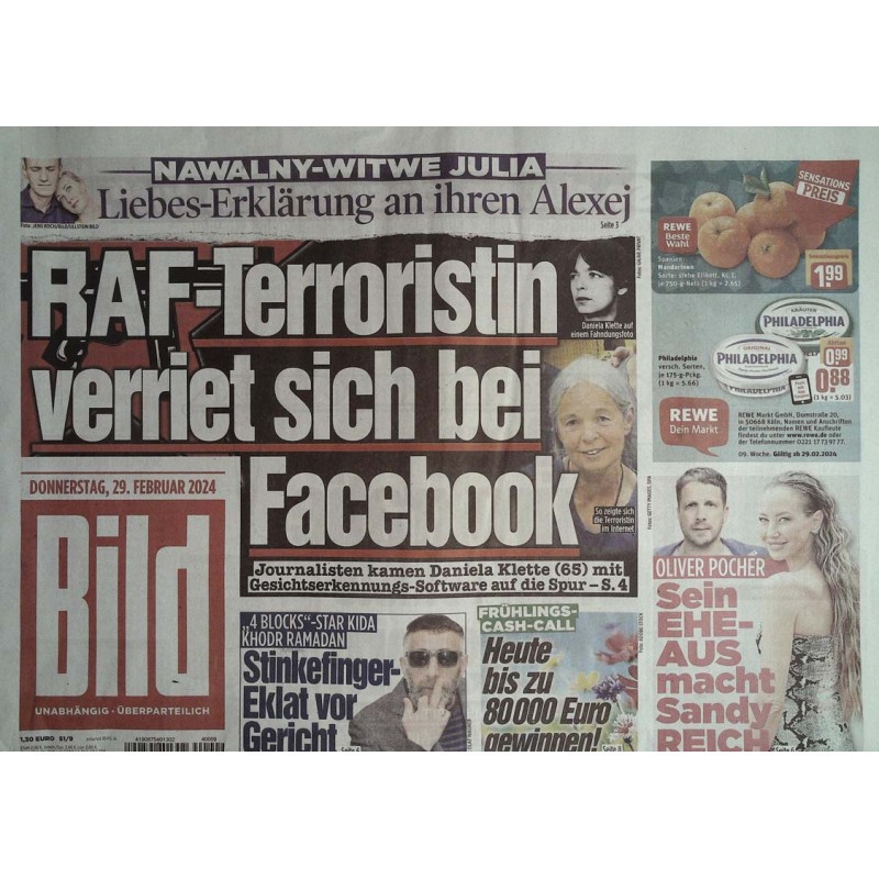 Deutsche Bild Zeitung vom Donnerstag den 29.02.2024