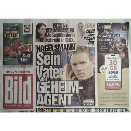 PLUS: 2 Jahre Ukraine Krieg: Außenministerin schreibt in Bild - Cora zieht über Pocher her - 5 gute Nachrichten gegen den bösen Krebs - 58 Cent mehr! Rundfunkgebühr soll steigen - Bild des Tages: Das neue Herz von Bild