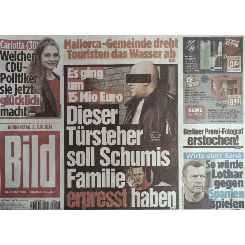Titelblatt: Es ging um 15 Millionen Euro: Dieser Türsteher soll Schumis Familie erpresst haben