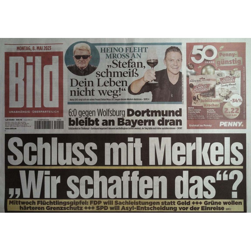 Deutsche Bild Zeitung vom Montag den 8.5.2023