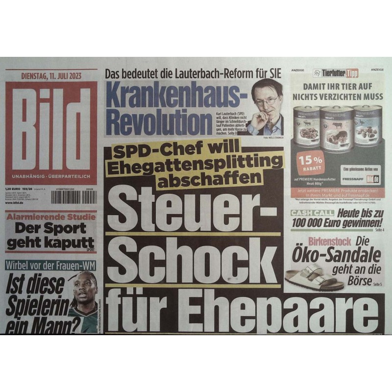 Deutsche Bild Zeitung vom Dienstag den 11.7.2023