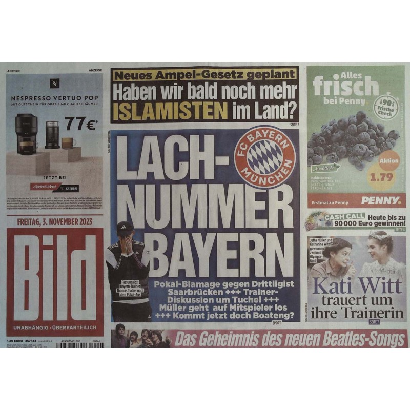Deutsche Bild Zeitung vom Feitag den 3 November 2023