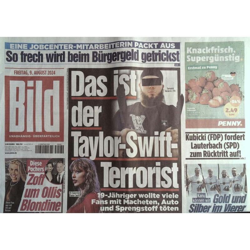 Deutsche Bild Zeitung vom Freitag den 9.8.2024