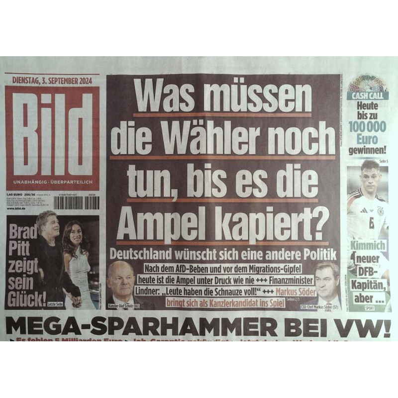 Deutsche Bild Zeitung vom Dienstag den 3.09.2024