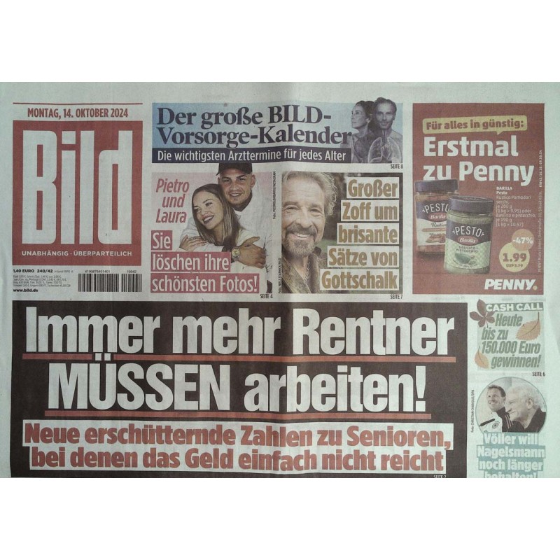 Deutsche Bild Zeitung vom Montag den 14.10.2024
