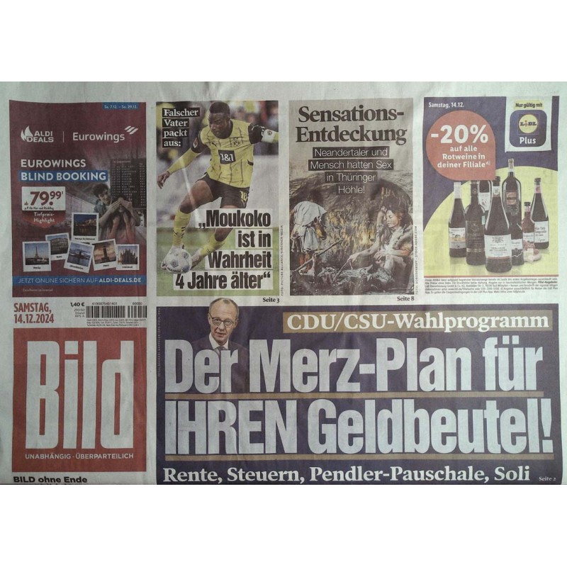 Deutsche Bild Zeitung vom Samstag den 14.12.2024