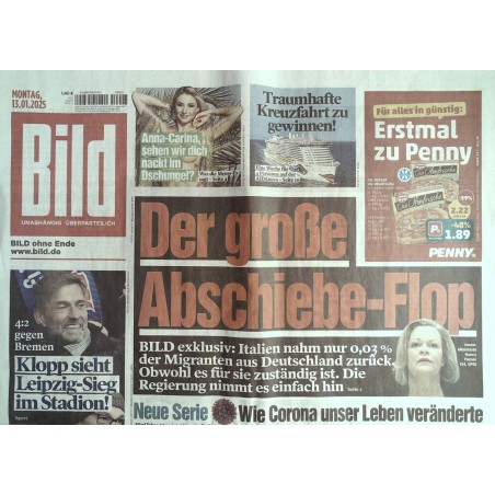 • Bild Zeitung Montag, 13 Januar 2025 - Der Abschiebe-Flop