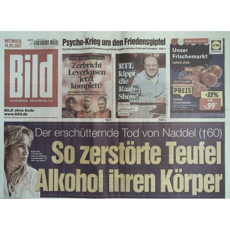 PLUS: Psycho Krieg um den Friedensgipfel - RTL kippt die Stefan Raab-Show - Zerbricht Leverkusen jetzt komplett? - Flug-Verspätung? EU dreht den Geldhahn zu - Bahnnetz nicht ausreichend digitalisiert - Waldbrände belasten deutsche Versicherer - Bild des Tages: In den Rhein muss Regen rein