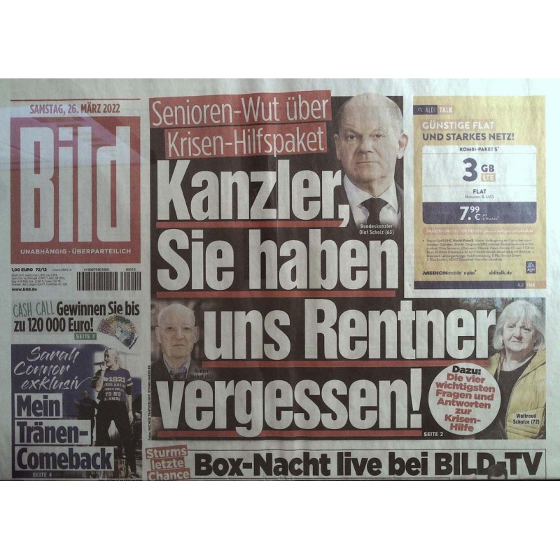 Deutsche Bild Zeitung vom Samstag den 26 März 2022