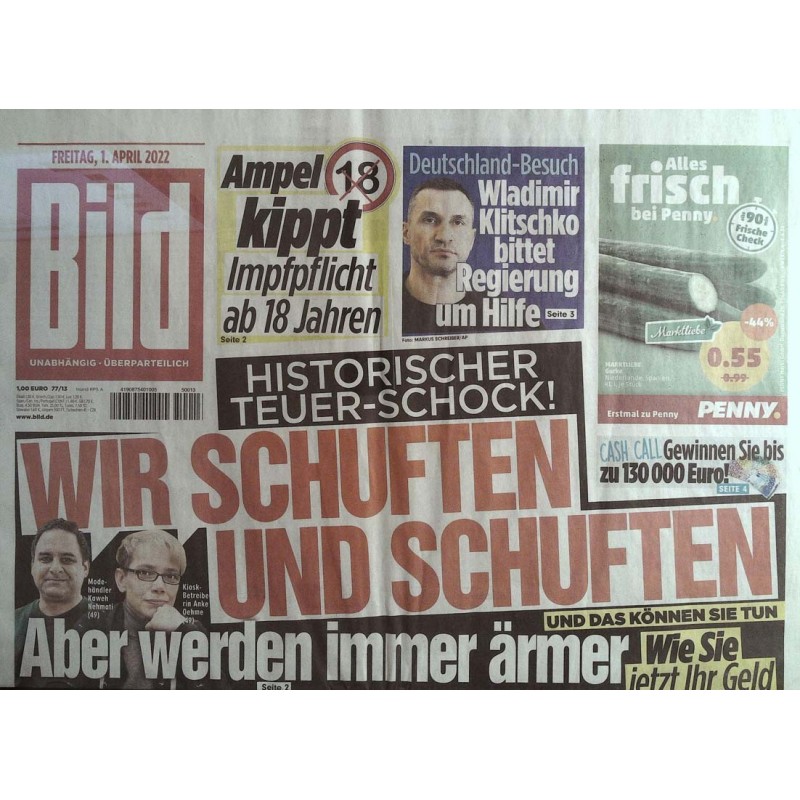 Deutsche Bild Zeitung vom Freitag den 11 April 2022