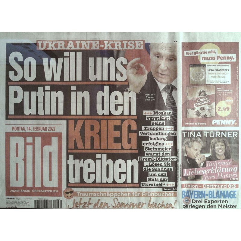 Deutsche Bild Zeitung vom Montag den 14 Februar 2022