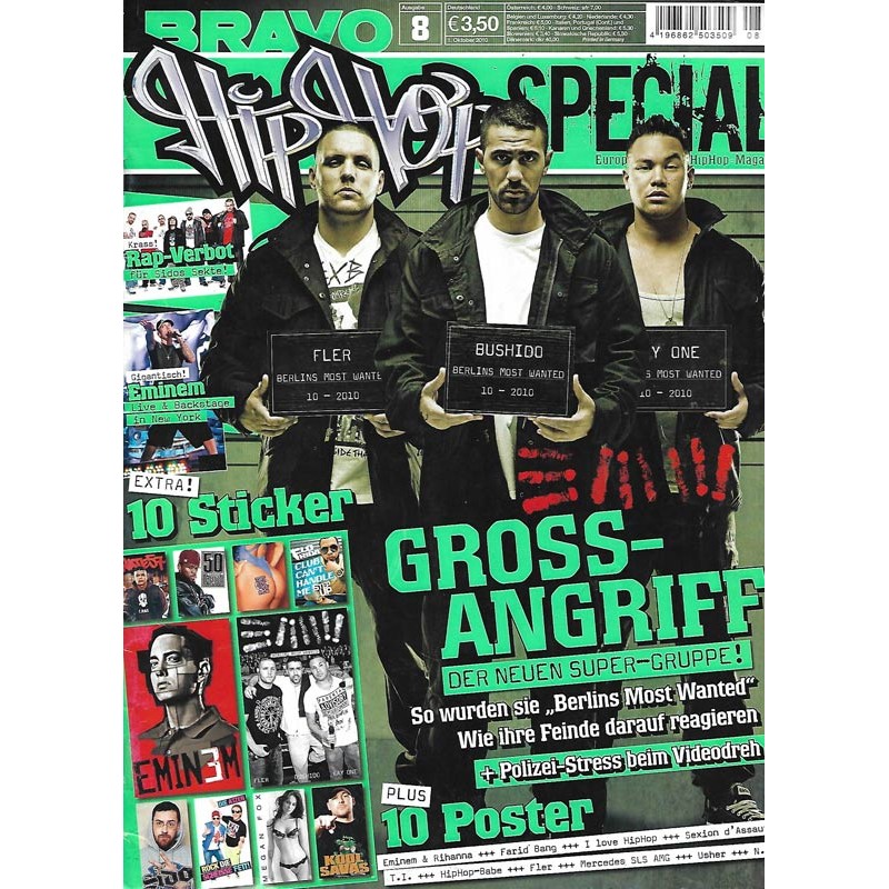 PLUS: 10 Sticker (enthalten) - Krass! Rap Verbot für Sidos Sekte - Gigatnisch! Eminem Live & Backstage in New York - Poster: Eminem & Rihanna; Farid Bang; I Love HipHop; Sexion d Aussat; T.I.; Hip Hop Babe; Fler; Mercedes SLS AMG; Usher; N.W.A. (enthalten)