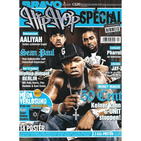 PLUS: Exklusiv: Pharrell im Interview - Lifestyle: Jay-Z, was er so zum Leben braucht - Unvergessen: Aaliyah, gottes schönster Engel - Sean Paul: Vom Außenseiten zum Dancehall Superstar! - Auf 15 Seiten: hiphop Hotspot Berlin mit Sido, Harris, Fler, Bushido & Kool Savas - Poster: Deine Lieblings Rapper; 2 Pac; Beatie Boys; Beyonce; Sean Paul; Samy Deluxe; Young Jeezy; Busta Rhymes; Notorius BIG; Bow Wo; Bushido; Cypress Hill; Eminem (enthalten)