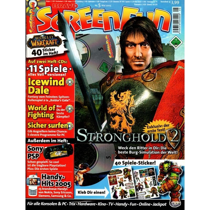 PLUS: Sony PSP: Schon gespielt. So cool ist die tragbare Playstation - Handy hits 2005: 25 brandneue Handys von Nokia, Sony Ericcson, siemens, Samsung und Co. - Extra: 40 Spiele Sticker (evtl. enthalten) - CD / DVD: 11 Spiele, Icewind Dale, World of Fighting, Sicher surfen uvm. (nur eine CD enthalten)