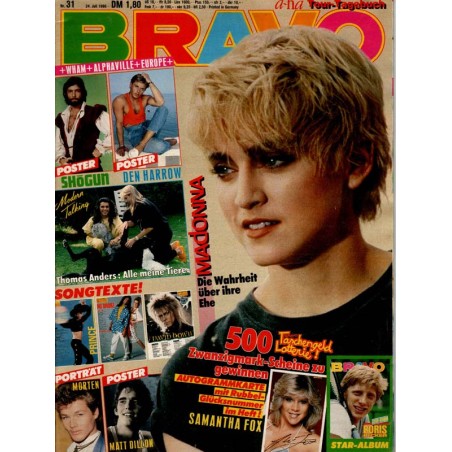 PLUS: a-ha: Tour Tagebuch - Modern Talking Thomas Anders: Alle meine Tiere - Star-Album: Boris Becker (evtl. enthalten) - Autogrammkarte: Samantha Fox (evtl. enthalten) - Poster: Shögun, Den Harrow, Wham, Alphaville, Europe (zum Teil enthalten) - Songtexte: Prince, David Bowie, Nu Shooz