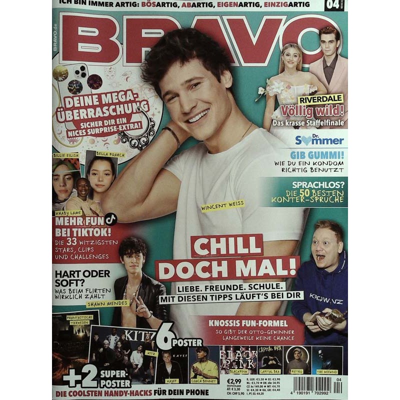 PLUS: Ich bin immer artig: Bösartig, Abartig, Eigenartig, Einzigartig - Riverdale völlig wild: Das krasse Staffelfinale - Dr. Sommer: Gib Gummi! Wie du ein Kondom richtig benutzt - Sprachlos? Die 50 besten Konter Sprüche - Mehr Fun bei TikTok: Die 33 witzigsten Stars, Clips und Challenges - Knossis Fun Formel: So gibt der Otto Gewinner langeweile keine Chance - Poster: Phantastische Tierwesen, Kitz, Kayef, Coach Bennet, Blackpink, Capital Bra, Pietro, The Weekend 8zum Teil enthalten) - Extra: Deine Mega Überraschung (evtl. enthalten) - Hart oder Soft: Shawn Mendes, was beim Flirten wirklich zählt