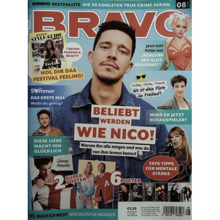 PLUS: Bravo Bestenliste: Die 30 coolsten True-Crime-Serien - Dr. Sommer: Das erste mal, weißt du genug? - Niall Horan: Diese Liebe macht ihn glücklich - Jetzt teilt Katja Krasavice aus: Schluss mit Slutshaming - Fritten, Flirten, Friends: Wo ist dein Platz im Freibad? - Wincent Weiss: Wird er jetzt Schauspieler? - Taylor Swift: Tipps für mentale Stärke - Nö, mach ich nicht: Nein sagen für Anfänger - Poster: Shawn Mendes, Lisa und Lena, Taeyang, Post Malone, Shirin David, Luciano, Billie Eilish, Kim und Nick (zum Teil enthalten) - Extra: 7 Seiten Fashion and Style (evtl. enthalten)