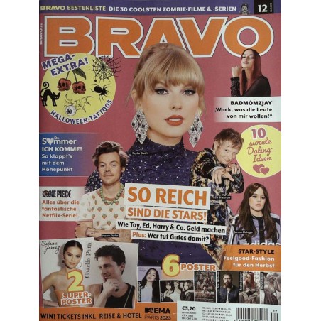 PLUS: Badmomzjay: Wack, was die Leute von mir wollen - 10 sweete Dating Ideen - Star Style: Feelgood Fashion für den Herbst - Dr. Sommer ich komme! So klappt es mit dem Höhepunkt - One Piece: Alles über die fantastische Netflix-Serie - Bravo Bestenliste: Die 30 coolsten Zombie Filme & Serien - Poster: Selena Gomez, Charlie Puth, Olivia Rodrigo, aespa, Post Malone, Badmomzjay, Shirin David, Sex Foundation (zum Teil enthalten) - Extra: Halloween Tattoos (evtl. enthalten)